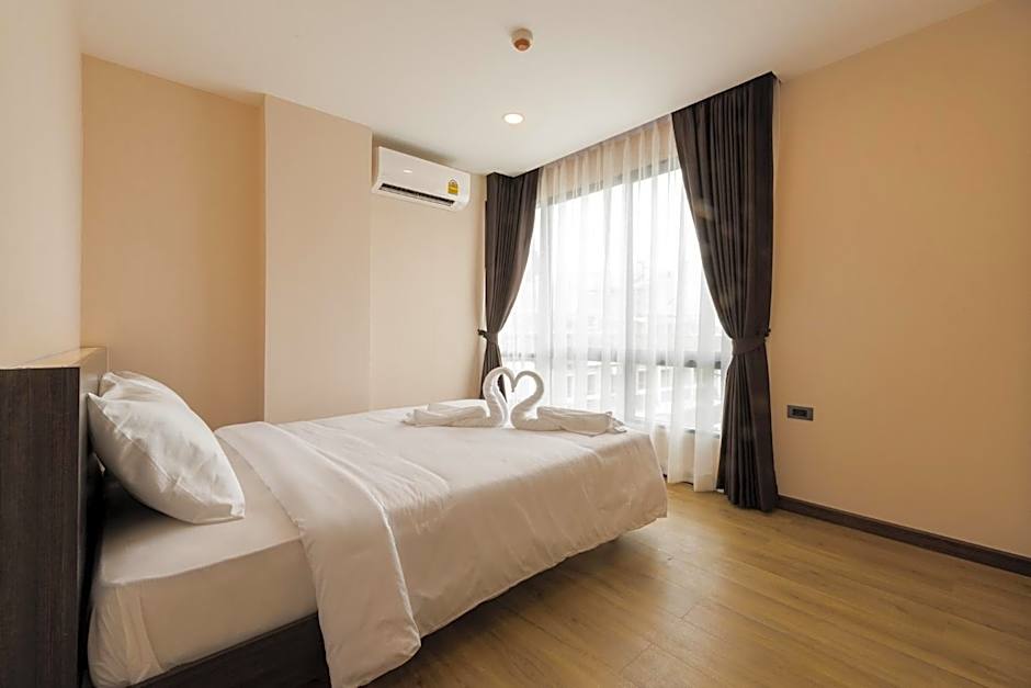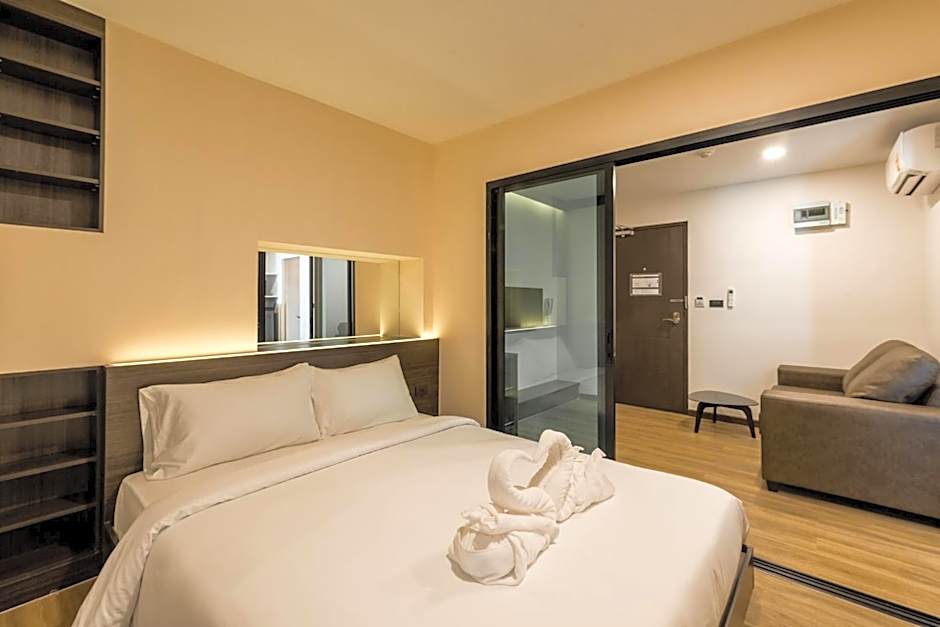 Staff are friendly and very accommodating. Room cleaning services available upon request. Just need to slide the sign at the front of the room. No need to call the lobby to request room cleaning. Mini kitchen with fridge, microwave, and sink. No stove. Plates, bowls, cups, utensils also provided. There is a small living room and dining room area inside the room. Private bathroom with hot shower. Location is good. Lots and lots of restaurants and 7/11 stores near the hotel. Key card access to entrance and elevator. So, it’s pretty safe. No curfew and there is security at night. About 8-10 mins walk to a BTS train station. Airport shuttle can be requested at an extra cost but saves a lot of time and it’s less hastle if you have an early morning flight like mine.