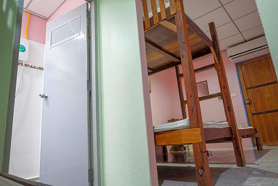 In the double room, the top bunk bed is right under the Aircon so it's cold for the person sleeping there and the mattress is a rock