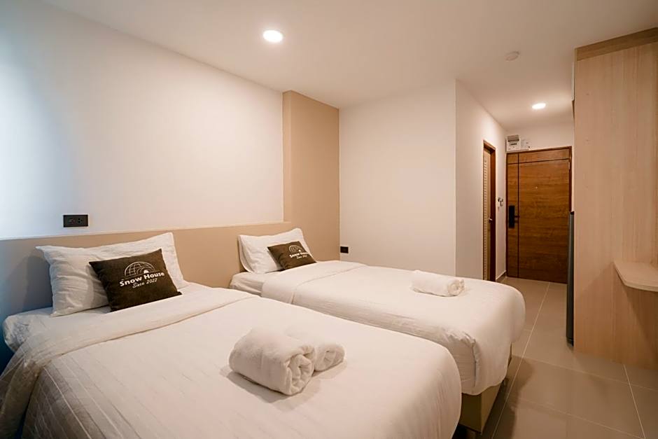Snow House Buriram offers four non-smoking options, each with its own setup. The Double Room is 237 square feet and features a Queen-size bed, accommodating 2 adults and 1 child. The Room - 2 Twin, Balcony spans 237 square feet and includes two Twin beds plus a balcony, also suitable for 2 adults and 1 child. The Room - 2 Bed is non-smoking and accommodates 2 adults and 1 child, though bed details aren’t listed. The Twin Room provides 237 square feet of space with a single Twin bed, for 2 adults and 1 child.
