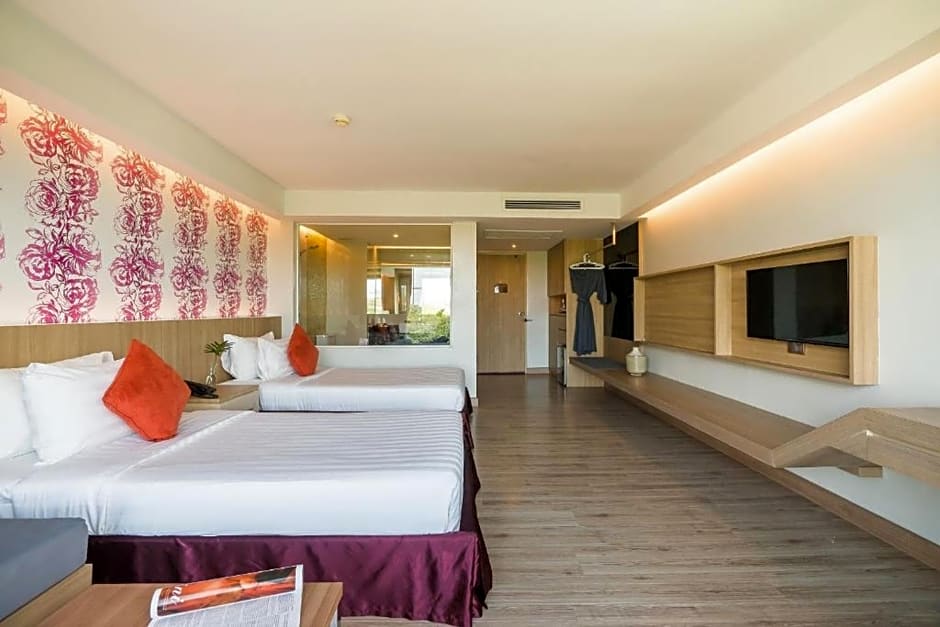 Resort offers breakfast and a full slate of amenities: Restaurant, Beachfront access with a Private beach area (free), an Outdoor swimming pool (free), and a Kids' pool, plus free Wifi and Room service. A Fitness center (free) is on site, with Shuttle service and Airport shuttle available for extra charges. Essential comforts include Air conditioning, Bar, Terrace, 24-hour front desk, Non-smoking rooms, Beach umbrellas (free), Beach chairs/Loungers, Garden view, Elevator, Playground, Garden, View, Free toiletries, Balcony, and Bathtub.