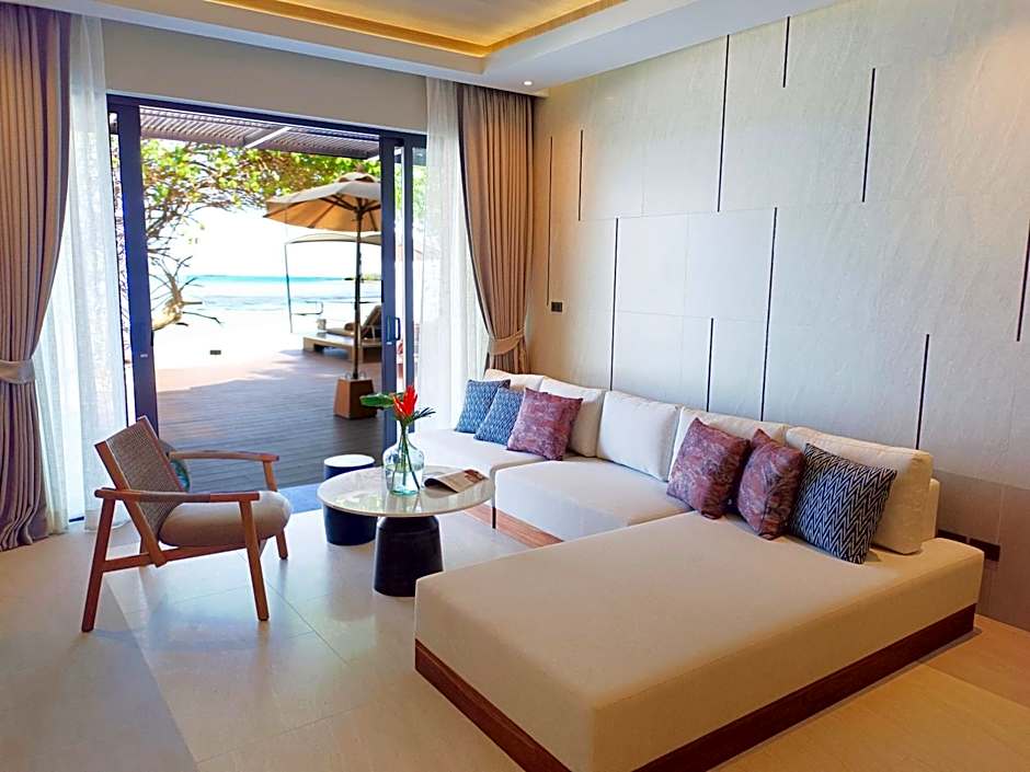 Picture yourself lounging by one of the outdoor swimming pools, sipping a cocktail from the beachfront bar, or taking a rejuvenating dip in your private pool. Ready for a little adventure? Dive into the on-site water sports facilities or unwind with a pampering session at the wellness spa. Wrap up your day with a delightful dinner at the resort's restaurant or a cozy room service treat, knowing that a blissful night's sleep awaits in your elegantly appointed suite equipped with all the essentials for a dreamy getaway.