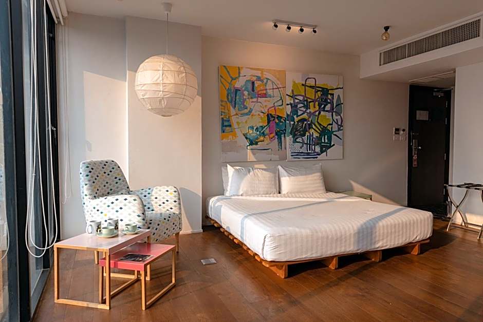 The hotel has several room types available. The Artist Signature rooms, designed by various artists, are all double rooms with a size of 323 sqft. They accommodate 2 adults and have one double bed each. The Exclusive Nude Gallery Room is a TwinDouble room with a size of 323 sqft, accommodating 2 adults with two twin beds and one double bed. The President Artist Signature Suite is a Suite room with a larger size of 484 sqft, accommodating 3 adults with a king-size bed. Lastly, the Art Gallery Connecting room is a Family room with a spacious size of 646 sqft, accommodating 4 adults with two twin beds and one double bed. All rooms are non-smoking.