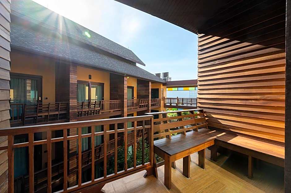 A balcony with a garden view provides a relaxing perch after a day of exploring Chiang Mai, offering a pleasant outdoor moment to unwind and soak in the surroundings.