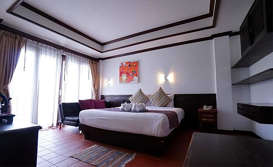 Address: 117/1 Ratchamunka Rd, Phasing Mueang, Chiang Mai 50200. Featured amenities include a restaurant, an outdoor swimming pool (free), private parking (free), and free Wifi, along with streaming service (like Netflix), air conditioning, sun deck, tour desk, terrace, a 24-hour front desk, non-smoking rooms, beach chairs/Loungers (free), patio, elevator, upper floors accessible by elevator, free toiletries, balcony, soundproof, and a bathtub.