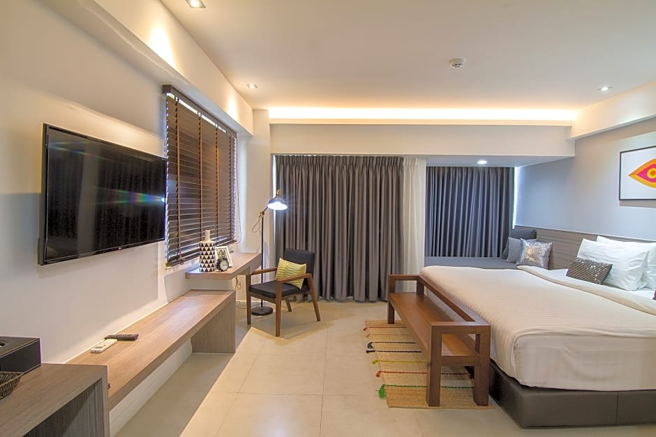 Classic Deluxe is 334 square feet and includes a king-size bed 150-183 width plus desk, safe, and slippers.