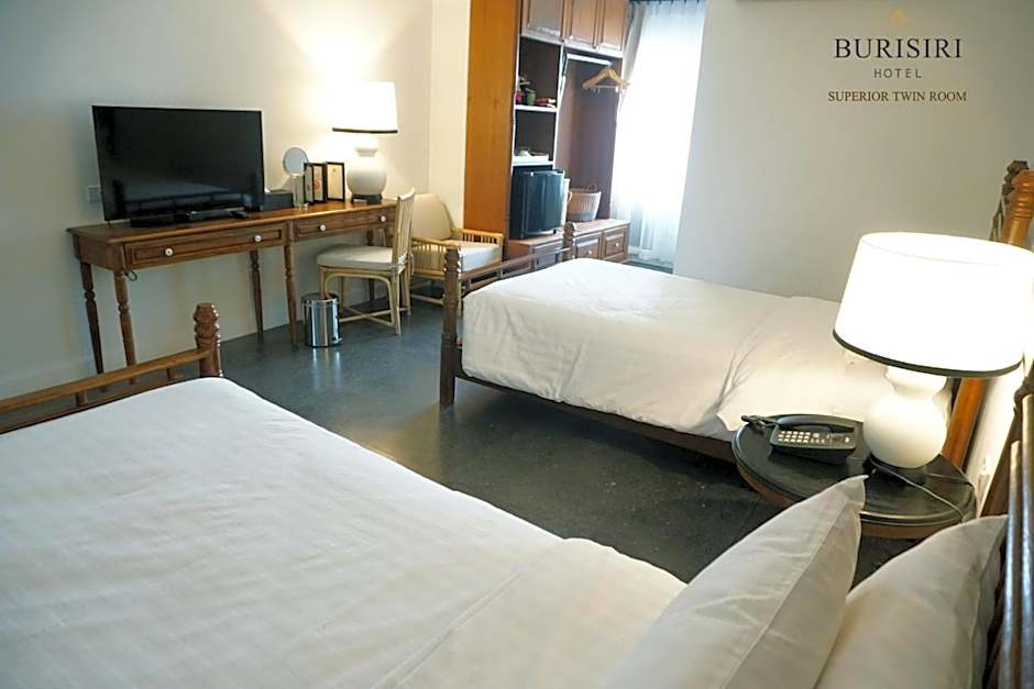 The Buri Siri Boutique Hotel offers a variety of room types including Deluxe Double, Standard Twin, Superior Double, Standard Double, Deluxe Studio Twin, and Superior Twin rooms. Each room can accommodate 2 adults and 1 child, with the exception of the Studio Twin room which has a king size bed. Smoking is not allowed in any of the rooms.
