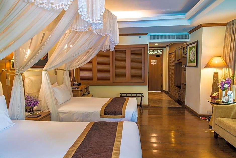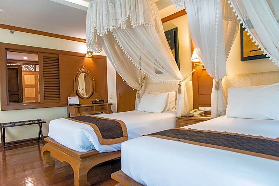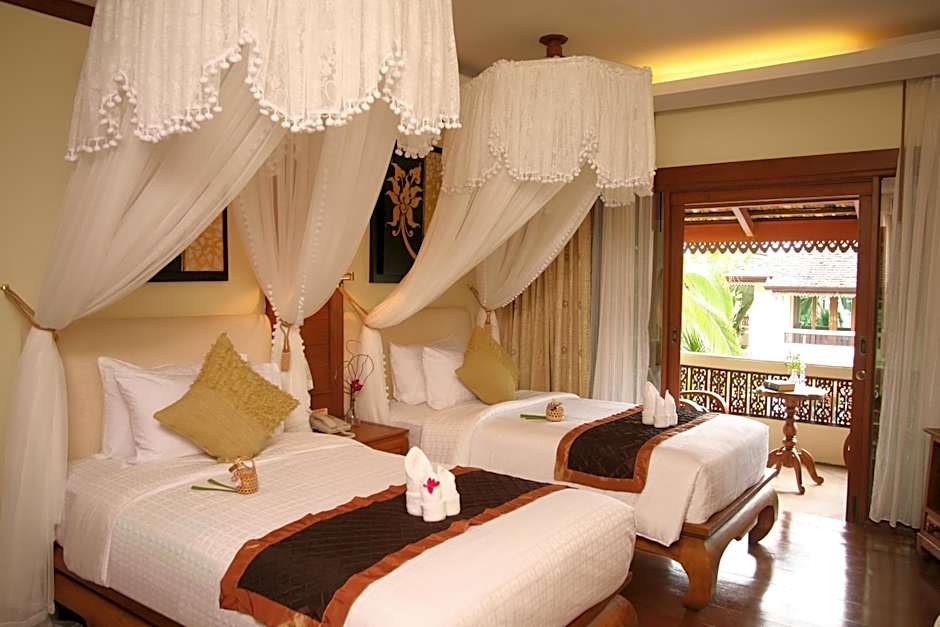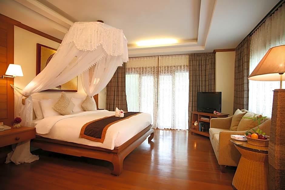 Thai-style room with 32-inch flat-screen TV, spa bath, free Wi-Fi. It offers views of the garden and pool.
