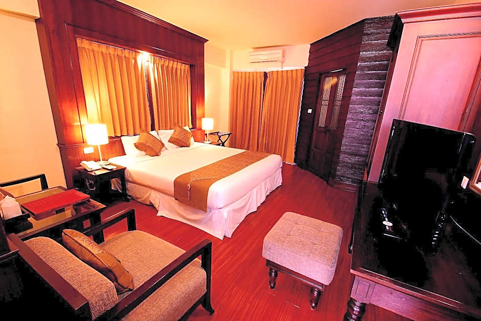 Deluxe Lanna is 323 square feet and includes either a king-size bed 150-183 width or 2 single beds 80-130 width plus balcony, cable tv, hairdryer, and safe.