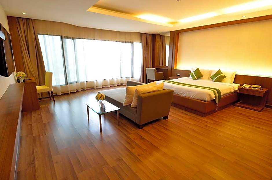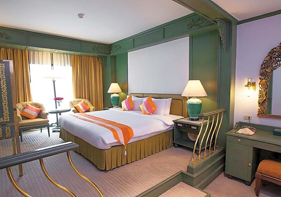 The Chiangmai Grandview Hotel & Convention Center offers a variety of room types, including Standard Twin Rooms, Large Twin Rooms, Junior Suites, Deluxe Twin Rooms, Premium Suites, Standard Double Rooms, and Large Double Rooms. All rooms are non-smoking and can accommodate up to 3 adults and 1 child. The bed sizes range from twin beds to queen or king size beds, depending on the room type. Room sizes vary from 280 sqft to 775 sqft.