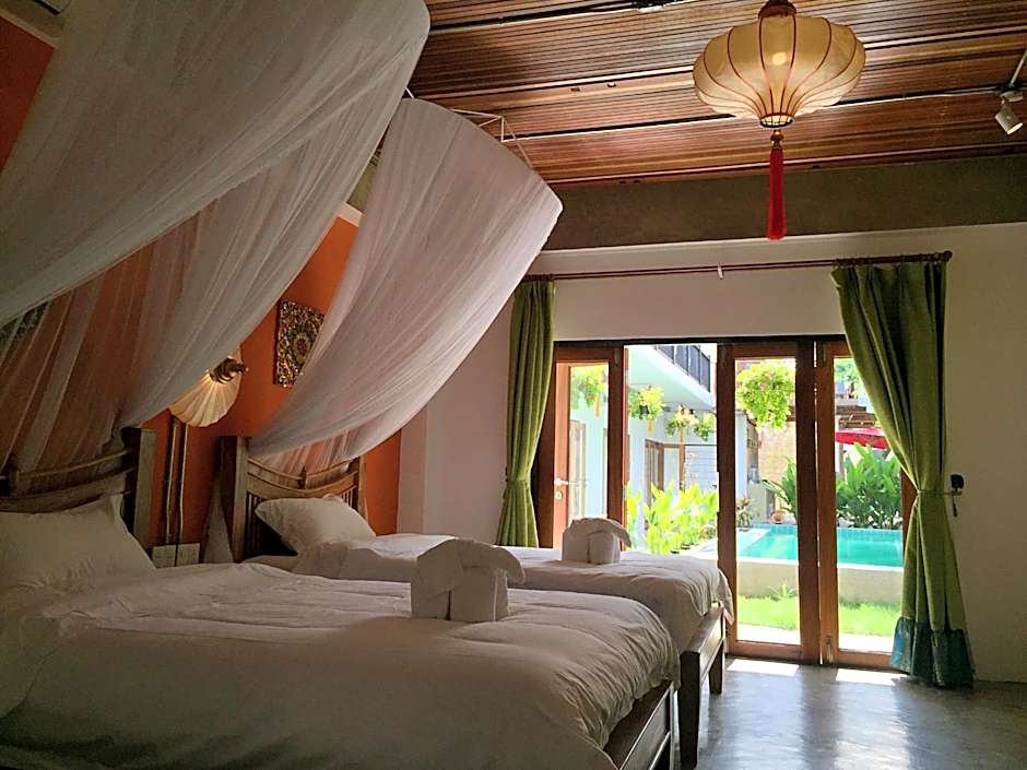 Charming boutique hotel, but the real kind, not just some modern cold marble bath and fake ethnic touches. Our family room was spacious, set up with antique furniture, the most conformabile mattress of our holiday in Thai and a huge bathroom. The hotel is very clean and tidy and the pool is always fresh, and on top of all the owners and the staff are delightful. The position is prime: just around the corner from the walking street, very close to all main spots the but also quiet. They do not offer breakfast but there’s plenty of cafes in the neighborhood. Overall, a great stay. Grazie Ah Long!