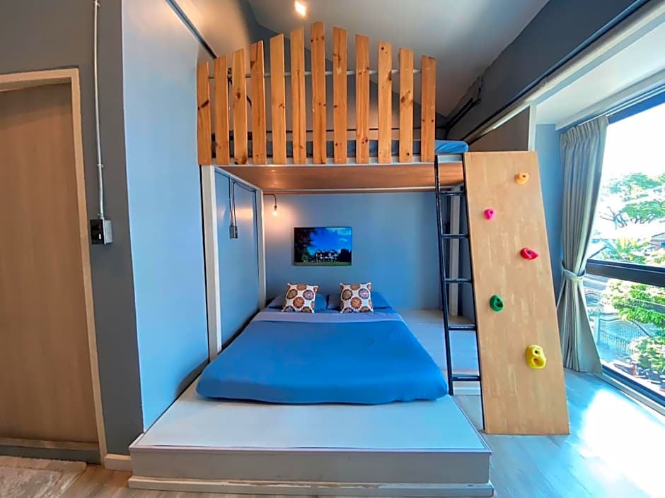 Spacious Deluxe Family Room with a Twin and Bunk bed, accommodating 5 adults. Enjoy air conditioning, free toiletries, and a private bathroom. Ideal for a comfortable and relaxing family stay.
