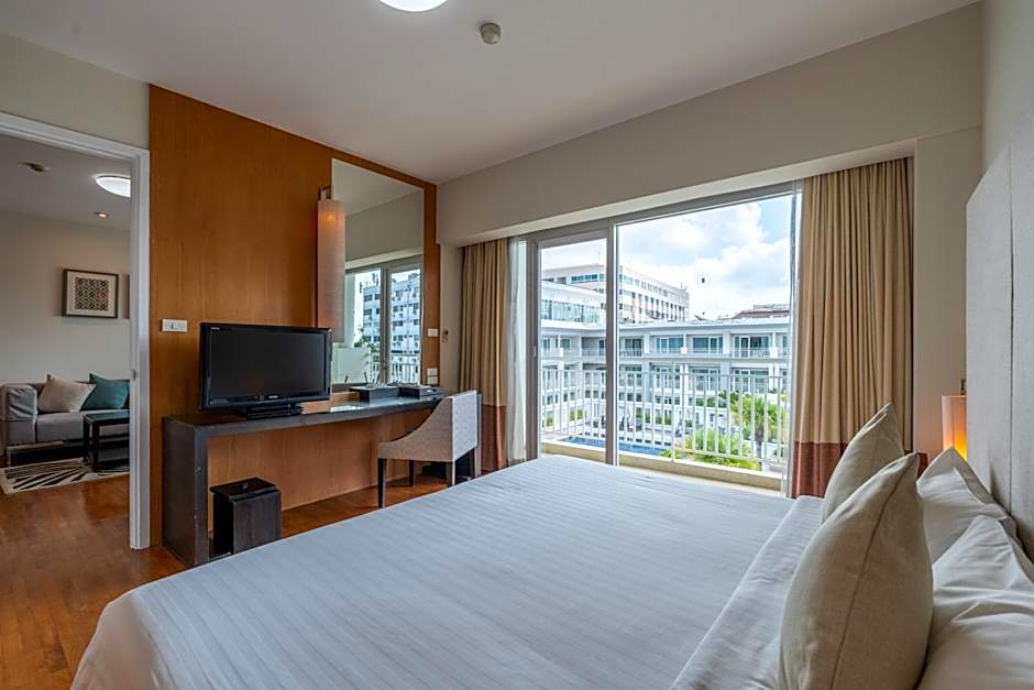 Guests will have a special experience as the suite provides a pool with a view. This spacious suite consists of 1 living room, 2 separate bedrooms and 2 bathrooms with a walk-in shower and free toiletries. In the well-equipped kitchenette, guests will find a refrigerator, kitchenware, a microwave and an electric kettle. This air-conditioned suite includes a dining area, a flat-screen TV with cable channels executive lounge access and a balcony. The unit offers 4 beds.