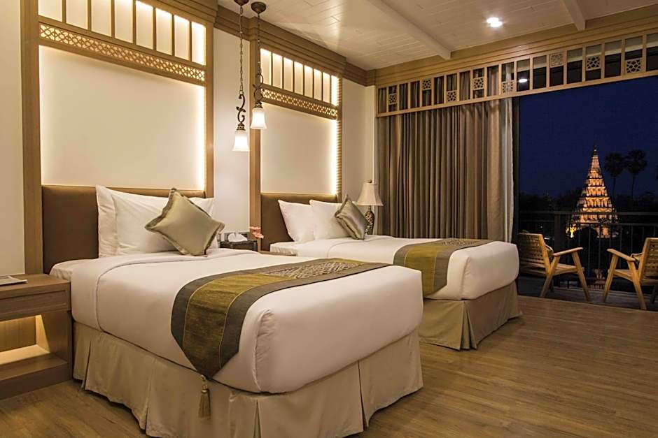 This suite overlooks the Ping River and an ancient pagoda and has a separate large balcony with a seating space for guests to relax. Complimentary coffee and tea are also available for guest comfort.
