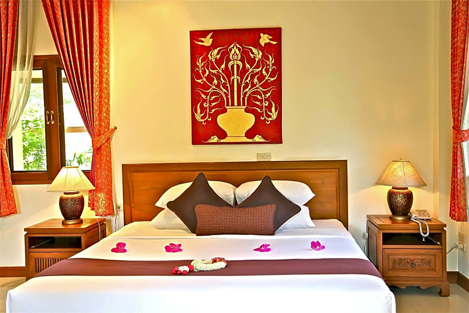 The one-bedroom villa features a separate dressing room, a vanity table and a bathroom with separate shower, bath and washbasin. Guests have access to a rear garden with waterfall and a seating area. There is also a kitchenette and a terrace that overlooks the tropical garden and pool. Please note that the Ninneth Villa and Fuangfha Villa are connecting villas and can be reserved separately or together for a larger group of guests. The 2 villas are linked by a small bridge over a river.