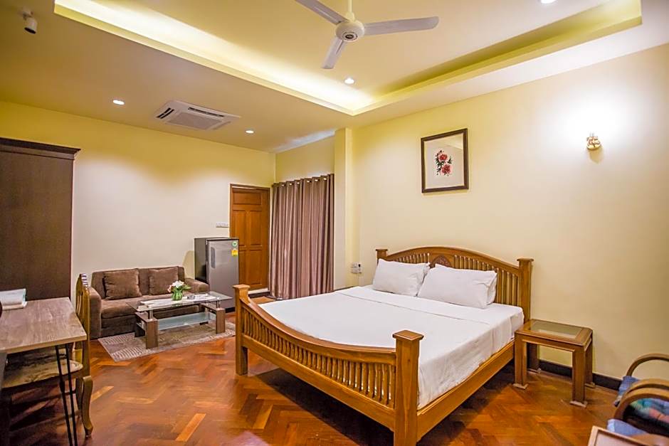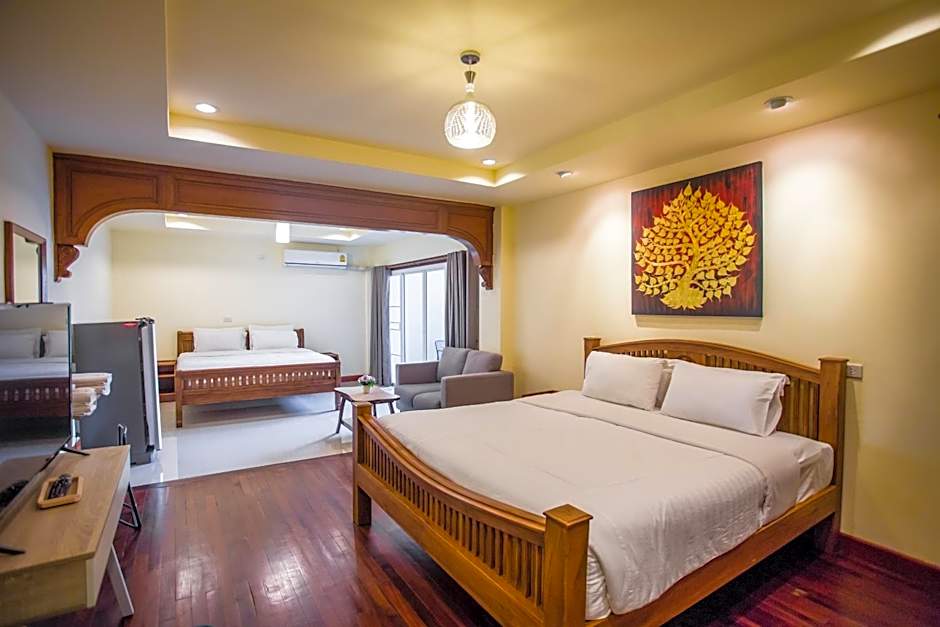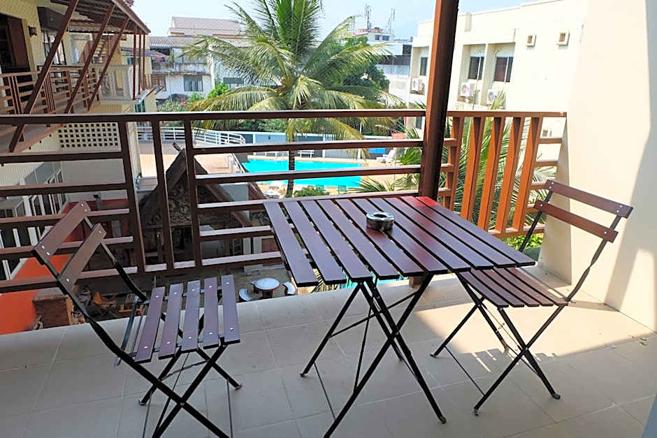 Huge rooms, spacious balcony, big fridge, friendly receptionists. Honestly this is a find in Chiang mai, it has it all but is a bit dated however everything works!! The pool is a plus, with showers and changing rooms next to it (so you can use them after check out!) there is free coffee available in the lobby at all times! The cleaners are attentive and do a great job of sprucing the room up. The second pool has a good empty space for exercise and yoga. Around the hotel there are good local restaurants, a couple of shops, cool street art, smoothie places and a weed shop.