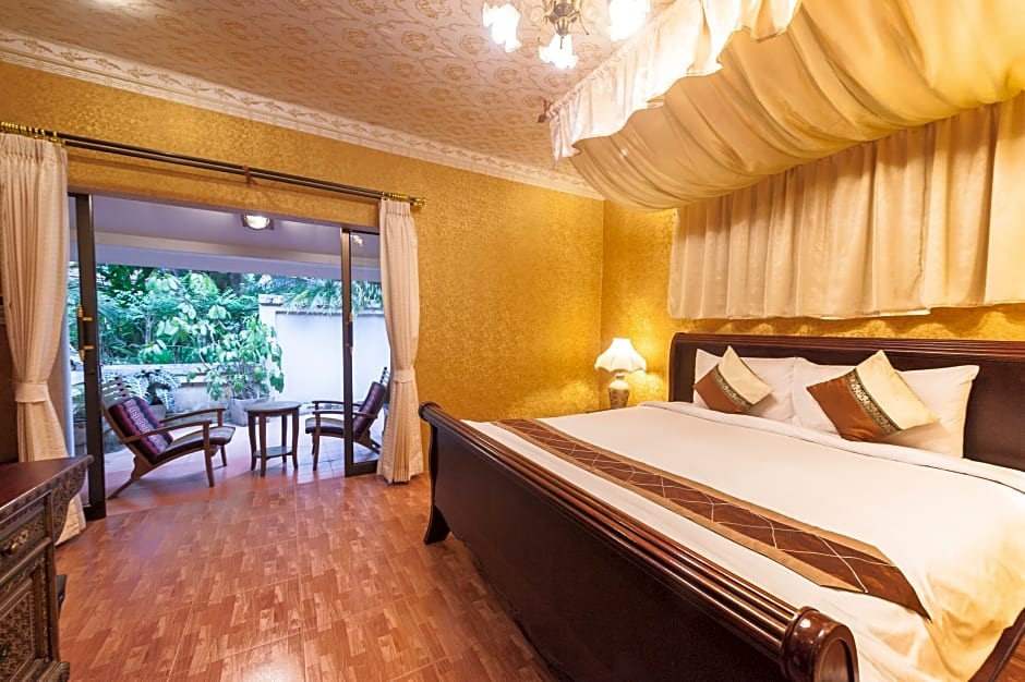Fitted with dark wood flooring and furnishings, this luxurious air-conditioned suite features satellite TV and a mini-bar. The private bathroom comes with bath and shower facilities.