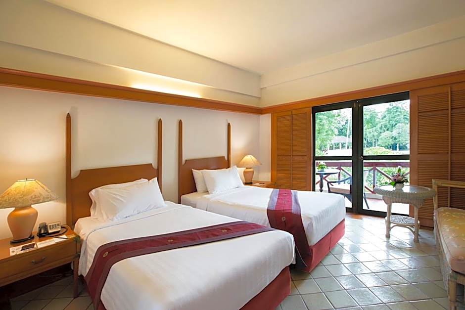 The Imperial Chiang Mai Resort & Sports Club offers a Duplex Suite, which is a suite with a size of 775 sqft. Smoking is not allowed in this room and it can accommodate 2 adults and 1 child. The room has a Queen size bed. Additionally, the hotel has Superior Double or Twin Rooms, which are TwinDouble rooms with a size of 280 sqft. Smoking is not allowed in these rooms as well, and they can accommodate 2 adults and 2 children. The beds available in these rooms are 2 Twin beds and 1 Queen size bed.