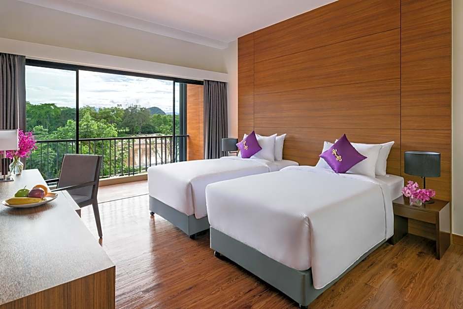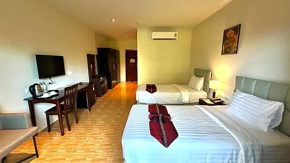 The Chainarai Riverside Recreation Centre offers Deluxe Twin Rooms, Standard Twin Rooms, Deluxe King Rooms, and Two-Bedroom Suites. The rooms are all the same size at 420 sqft and smoking is not allowed in any of them. The Deluxe Twin and Standard Twin rooms have 2 twin beds and accommodate 2 adults and 2 children, while the Deluxe King Room has 1 king-size bed and also accommodates 2 adults and 2 children. The Two-Bedroom Suite is larger at 1033 sqft and can accommodate 4 adults and 2 children with a king-size bed, a sofa bed, and 2 twin beds.