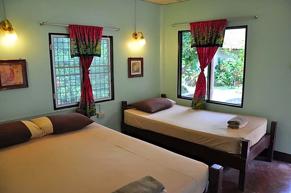 The swimming pool is amazing. We loved the staff. So polite and kind. Especially one girl is always smiling and want to talk to you. She took a picture with us. The bungalows are what you pay for. The bed doesn’t have sheets but a gross light brown fleece fabric. If the bed only would have bedsheets it would be perfect. Now sleeping here was terror. The bathroom is dirty. The toilet you don’t want to sit on because it’s full with stains. The shower will do but wear slippers. The sink is unstable but will do. And we were so happy with the airconditioning. How ever this was our cheapest stay so we know what we could expect. We stayed for 4 days. The staff, pool and location are all worth for booking this again. They have good prices so we ate breakfast, lunch and snacks at the pool. We bought many buckets with cocktails and also the prices for wine were also good. Our kids loved the smoothies. From the pool you can see the beach and enter the beach quickly. When you’re done you can shower the salt off. In the pool you can sit with your wine and smoke your sigarette. It was heaven. They give towels for the pool and beach so that was no problem. The personnel is speaking good English. The first night we went outside but our girls stayed in the room. Unfortunately the internet wasn’t working so we couldn’t reach them. I called the reception and they went to the room and gave our girls another wifi code so we could reach them. Only at the end there was a bit of a problem because we give our laundry to them and we were missing a bra 🥹 they searched everywhere but couldn’t find it so we left without it. That was a pity. We can recommend this place to everyone. We came before Fullmoon festival so it was quite on the island. Haad Rin is a walk of 10-15 minutes so that was perfect. The 7-11 on the other side of the street was under construction unfortunately but when that one is operational it makes it more easy. We were happy with our stay here!!