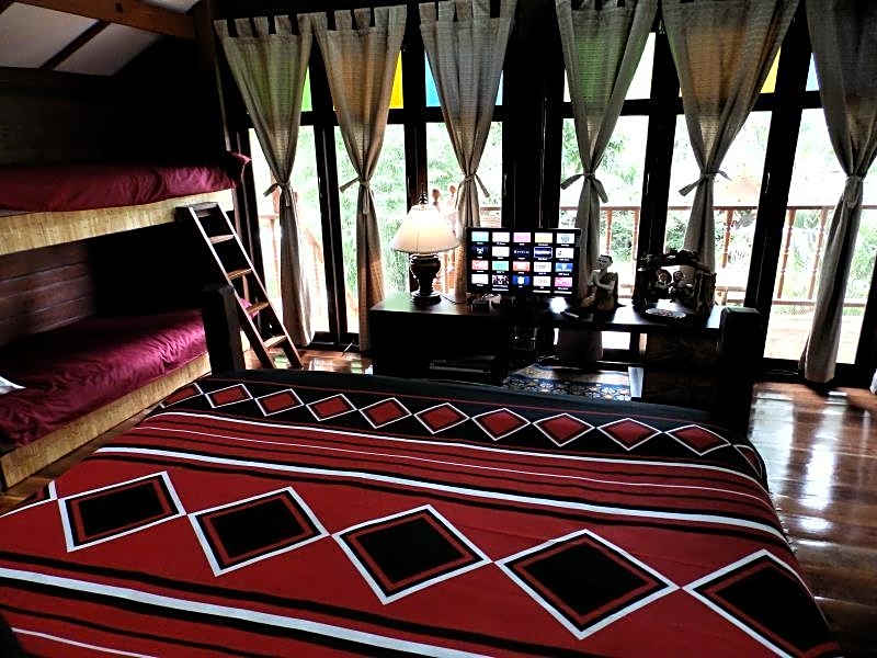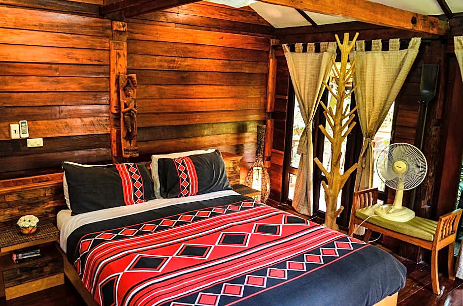 The converted traditional rice barn accommodates up to 4 guests. Made from genuine teak wood, the family room comes with a kitchen, a dining area and a private bathroom. It overlooks the gardens. Guests have access to a shared swimming pool.