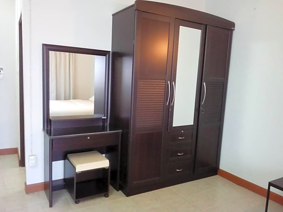 clean and comfortable room, has elevator, wifi and free covered parking, 3-5 minutes drive to Asean bazaar night market, green way & Plaza Central Hatyai in 1 same route, Quiet area, & has a large balcony. worth the price and will repeat again. Iron is provided in the lobby. Paling penting tidak berhantu😬