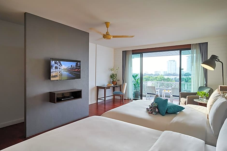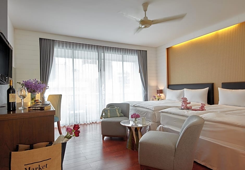 This twin/double room has a balcony with views of the garden or pool, mini-bar and seating area. When guests stay more than 2 people, Twin Bedded room will be assigned. It configures with 2 Queen Beds (5'x6.5') x 2 beds - No Extra Bed can be added.