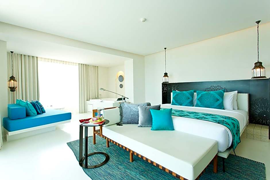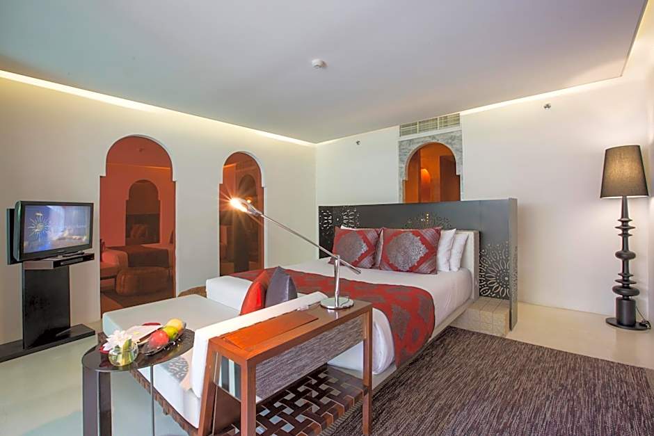 Decorated in an exotic Moroccan style, this spacious suite features an outdoor seating area. Includes daily drinking water.