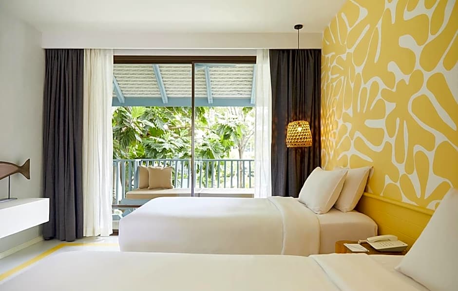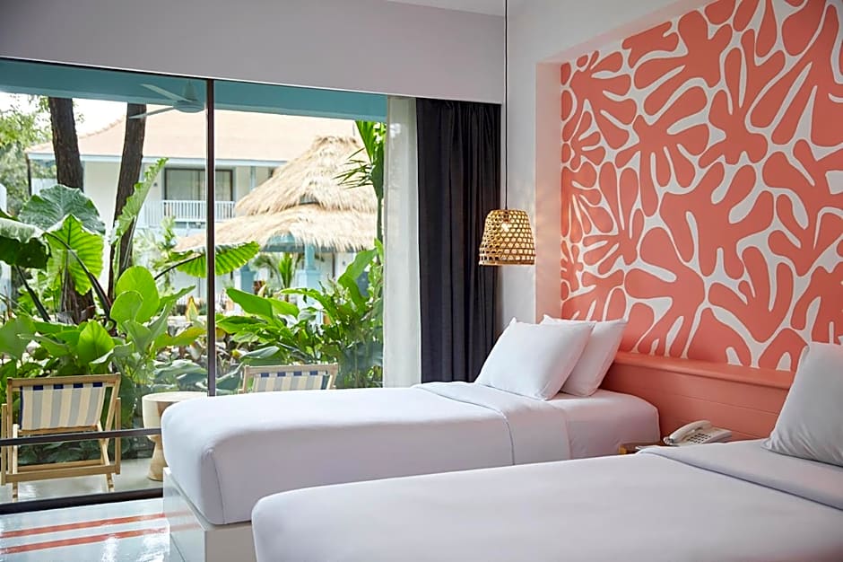 The Peri Hotel Hua Hin - SHA PLUS offers a variety of room options. These include Deluxe Twin Rooms, Superior Double Rooms, Deluxe Double Rooms, and Superior Twin Rooms with Garden View. All rooms have a size of 334 sqft and do not allow smoking. The rooms accommodate either 2 adults and 1 child or 2 adults without children. Bed options include either 2 Twin beds or 1 Queen size bed.