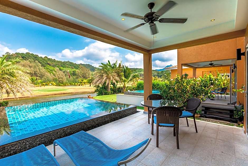 Featuring view of the golf course, this villa with private pool has a microwave, electric kettle and dining area.