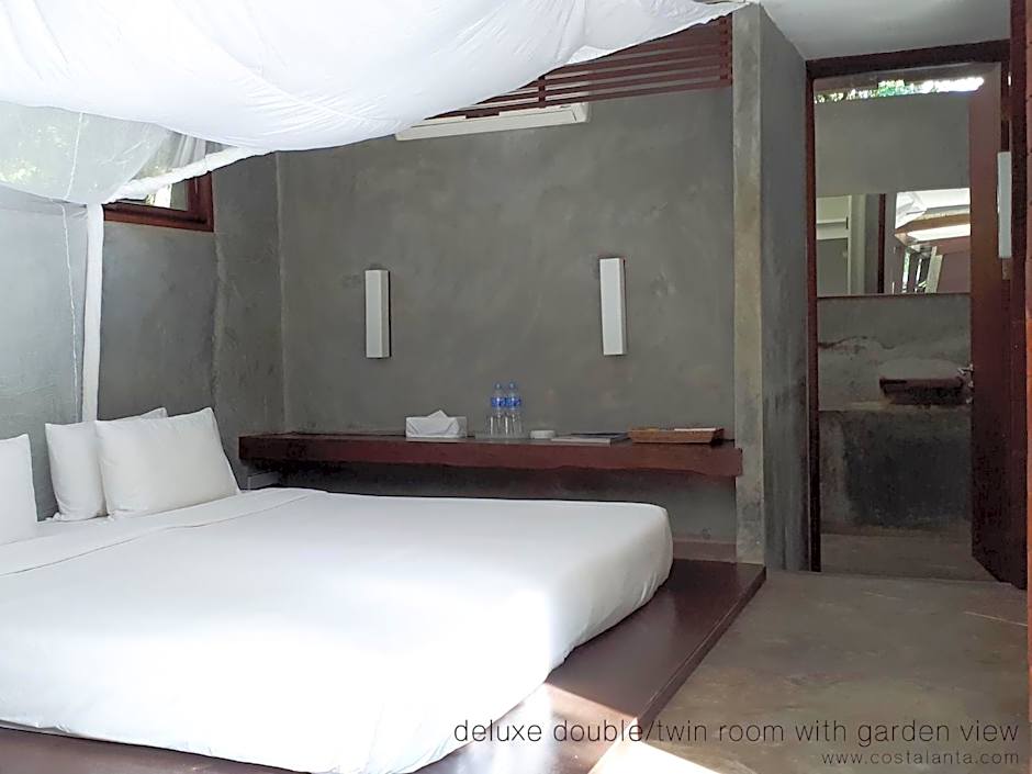 Costa Lanta - Adult Only offers Superior Double or Twin Rooms with Garden View featuring a King size bed, accommodating 2 adults. Smoking is not allowed in these 678 sqft rooms. Additionally, the hotel provides Deluxe Double or Twin Rooms with Garden View including a Queen size bed and two Twin beds, suitable for 2 adults without smoking accommodations.