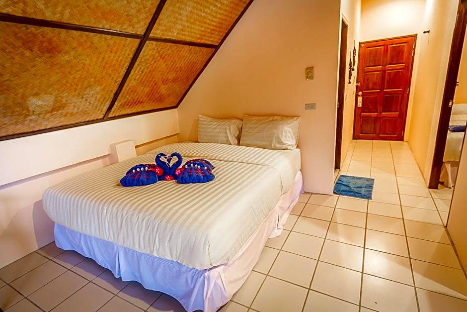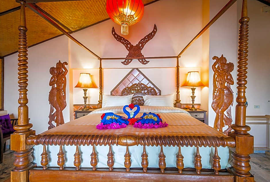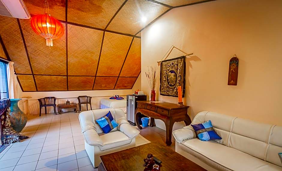 Surrounded by the tropical garden and close to the pool, this bungalow is decorated with Thai handicrafts. It also has air conditioning, a TV and front patio.