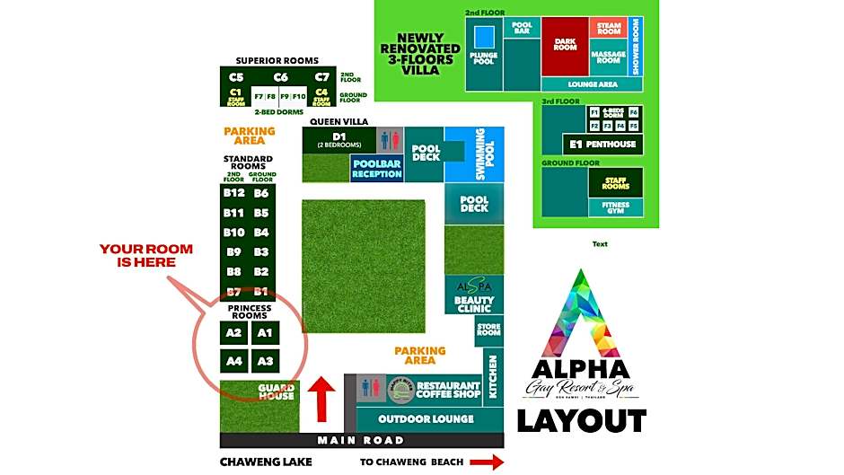 Choose from a variety of room types at Alpha Gay Resort & Spa - Men Only to suit your preferences and budget. The hotel offers Standard Rooms, Superior Rooms, Deluxe Rooms, and even Suites, providing options for every kind of traveler. Each room is designed with modern décor and comfortable furnishings to ensure a pleasant stay during your time in Thailand.