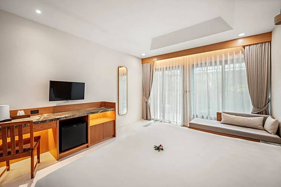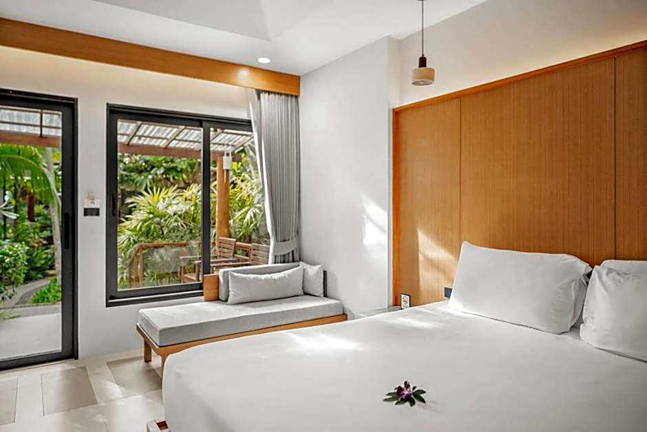 Large air-conditioned villa features a private balcony with garden views.