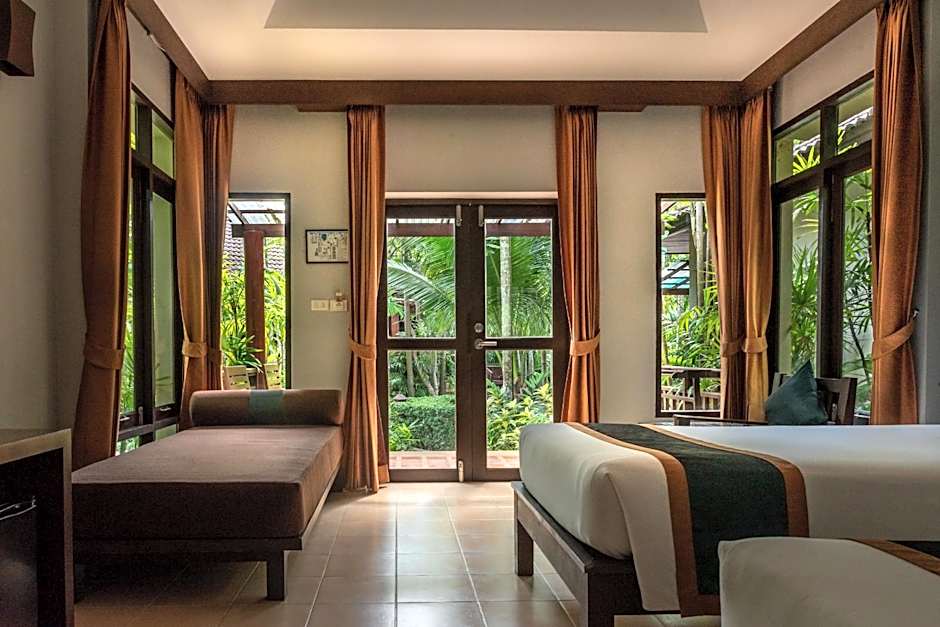 At Baan Chaweng Beach Resort & Spa, guests can choose from various rooms including Deluxe Rooms, Grand Deluxe Rooms, and Family Rooms. These rooms offer occupancy options from 2 to 4 guests, feature either king or twin beds, and provide views of the garden or the pool. Smoking is not allowed in any of the rooms.
