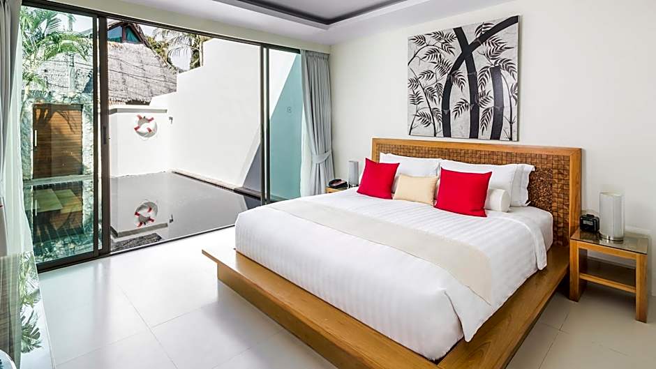 One Bedroom Tropical Pool Villa is 1292 square feet and includes a king-size bed 150-183 width plus satellite tv .