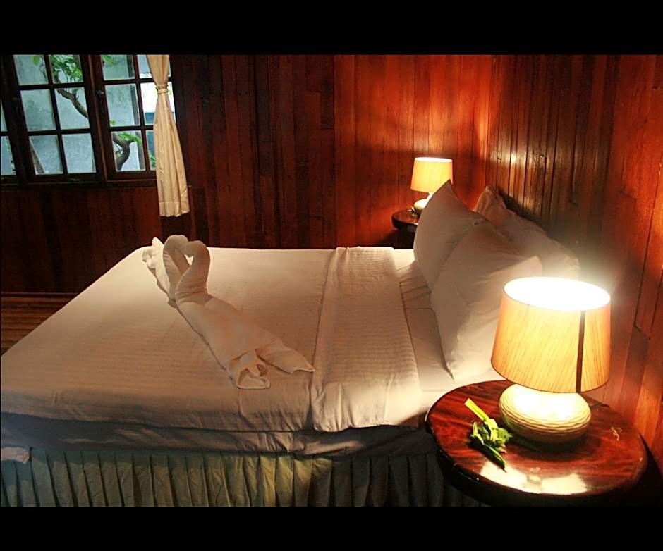 This cottage features a private balcony with garden views. Decorated with Thai-style wooden furnishings, it has air conditioning and a private bathroom with a rain head shower.
