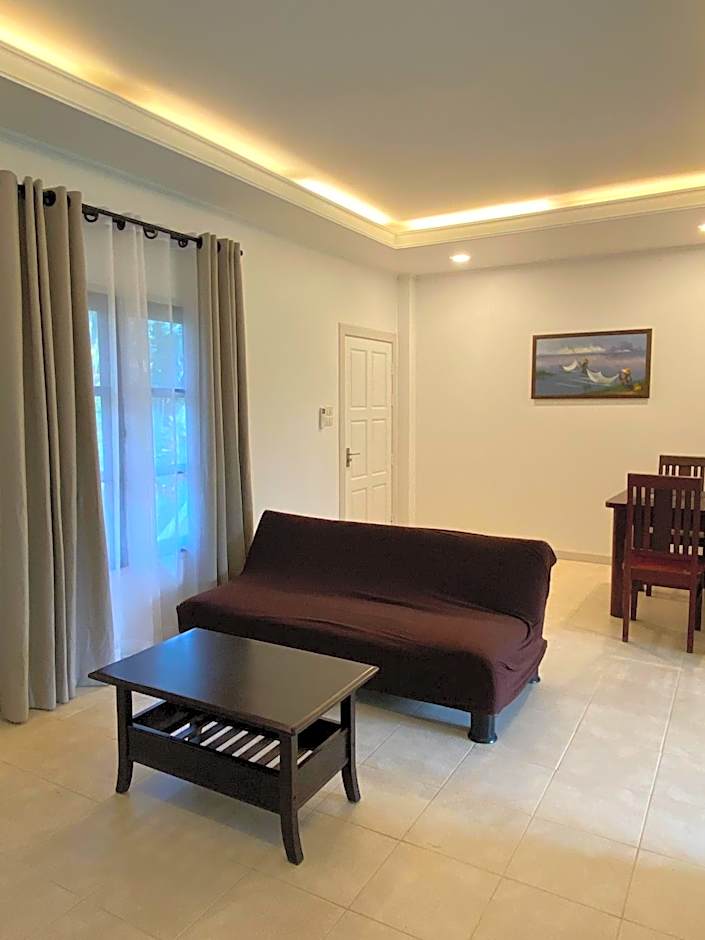 Not near the beach at all and quite far from shops etc. You need a car or a grab to get anywhere, so not ideal. The furniture in yhe appartment itself is old and a bit run down, the bathroom needs a renovation