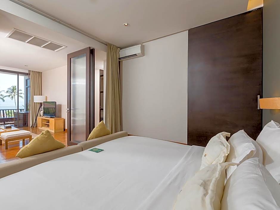 Accommodations range from the One Bedroom Deluxe Suite Plunge Pool (560 sqft) to the Two Bedroom Ocean Suite (1292 sqft) and the expansive Three-Bedroom Villa (4090 sqft), with signature options like the Presidential Suite Beach Front (4521 sqft) and the Presidential Suite Garden (3444 sqft). These suites and villas come in various configurations, many offering sea views, balconies, and private plunge pools.
