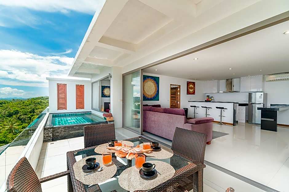 Spacious apartment is fitted with a balcony, flat-screen TV and safety deposit box. It also comes with a kitchen and private pool. Guests can enjoy views from an outdoor spa bath.