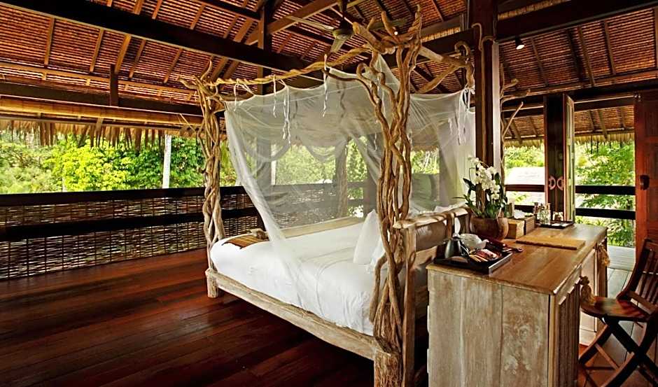 Offering plenty of natural light and air, the breezy villa comes with a well-furnished living room and a separate bedroom which opens up to views of the garden. Each villa has an private bathroom with an indoor and outdoor shower.