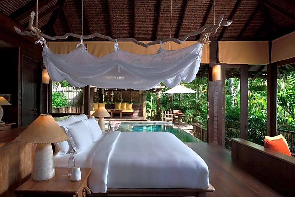 Double-story villa comes with 2 bedrooms, both with an attached semi-outdoor bathroom. Features a private 59 ft² infinity pool, an outdoor terrace with dining area and a wine fridge. Also has an espresso machine, DVD player and iPod dock.