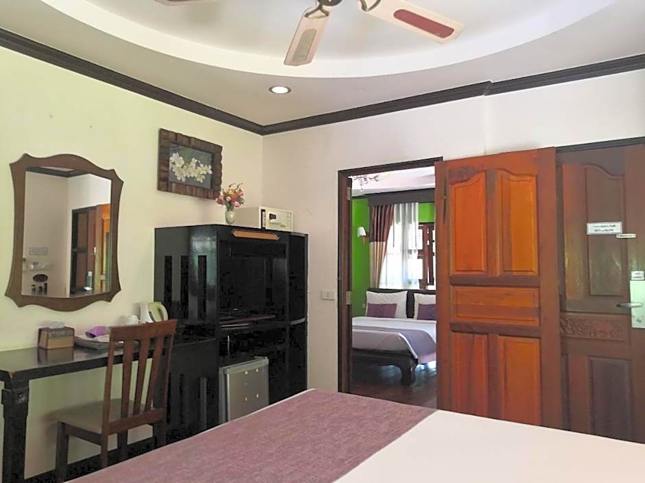 Featuring Thai decor, room has a flat-screen TV and wooden furnishings.