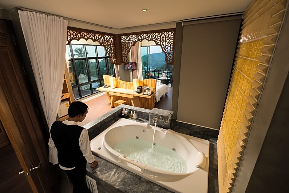 Adventure awaits just outside your door! Dive into the outdoor swimming pool for a refreshing dip or explore underwater wonders with snorkeling (extra charge). For ultimate relaxation, indulge in the hot tub or take a peaceful stroll on the sun deck. The resort also offers a kid-friendly buffet, making it an ideal spot for families seeking both fun and comfort. With free private parking and shuttle service (extra charge), getting around Koh Tao is a breeze.