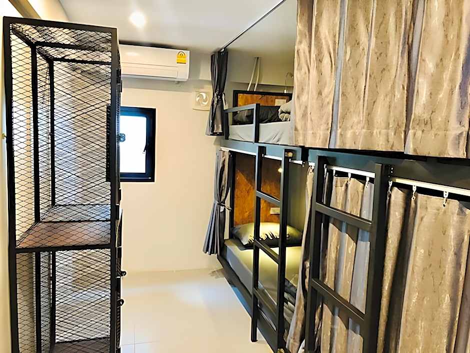 Big lockers and nice thick curtains on the bunks. AC was great and water machine had hot and cold water. Tables in rooms with chairs were nice and also social tables in communal area. Washing outside to left for 40baht kg. Staff always around to help. There are also cute cats hanging around if you like cats!