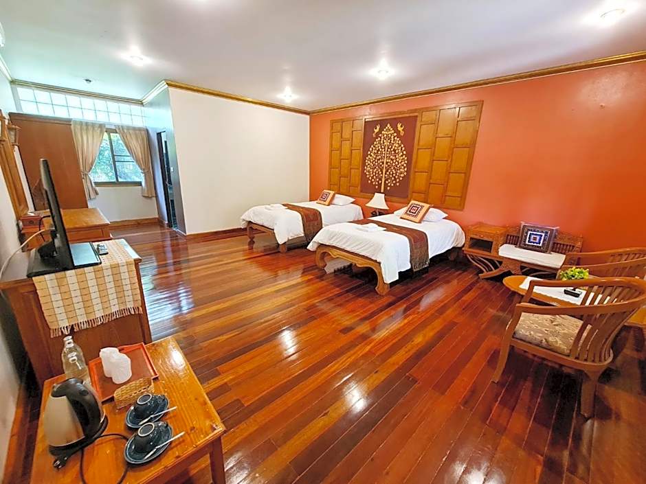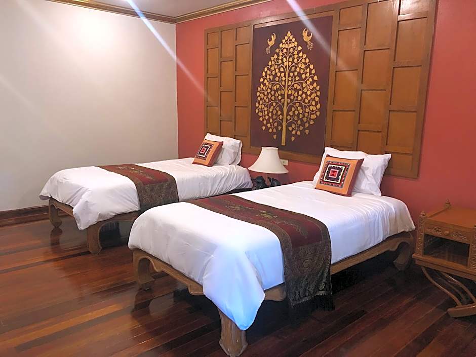 Very quite place outside the town. Good healthy mattress, very beautiful traditional Lanna style design, carved wood and textile. Very good hot shower pressure.