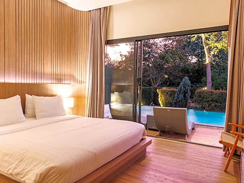 Occupancy varies by configuration: Standard, Twin and Standard, Balcony accommodate 2 adults and 1 child; Standard, Twin, Pool Access also fits 2 adults and 1 child; Suites (Garden View or Balcony) accommodate 2 adults and 1 child; the Villa accommodates 2 adults.