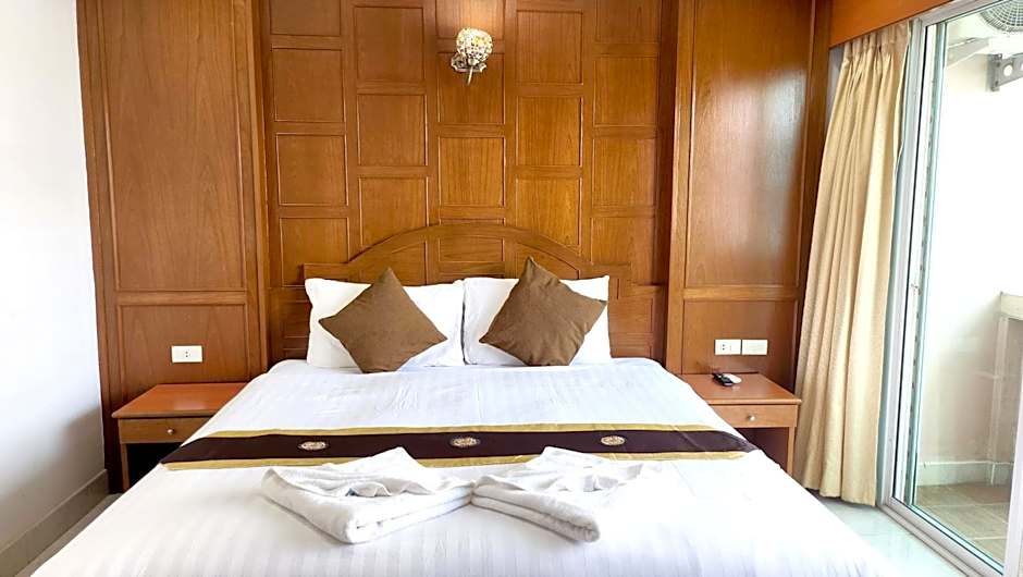 Our room had a large balcony with a street view which we liked, its a busy area with lots of life going on, great location for restaurants, bars, 7 eleven, junceylong shopping centre and a 10 minute walk to beach and bangla road. Location not too noisy when you want to sleep. The staff were lovely, rooms cleaned daily with coffee and water provided daily. Very comfortable bed and good shower. Tours and onward travel easily arranged by a lovely lady at the entrance aswell. Excellent value for money and the hotel is safe and secure with card entry for guests only.