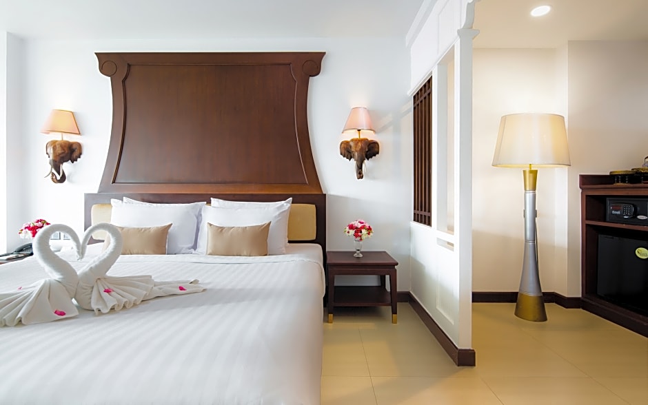 The Aiyara Grand Hotel offers a variety of room options including Superior Twin Rooms, Deluxe Double or Twin Rooms, Suites, Grand Suites, and Family Suites. Smoking is not allowed in any of the rooms. The rooms can accommodate 2 adults and 1 child, with the exception of the Family Suite which can accommodate 4 adults and 2 children. The bed sizes range from twin beds to king size beds, with some rooms also offering a sofa bed. Room sizes range from 452 sqft to 861 sqft.