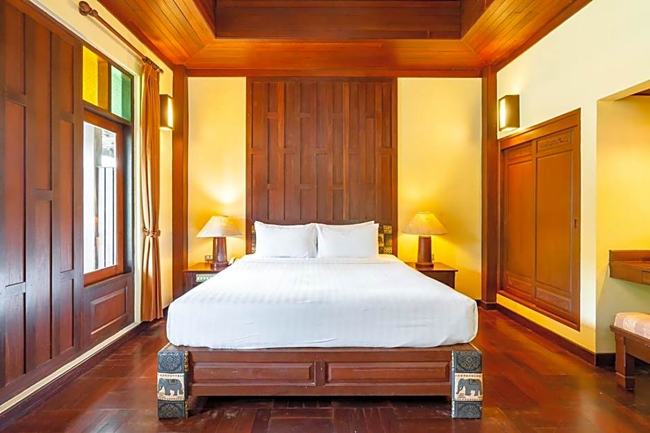 Accommodations range from Bungalow, Thai Villa Double Room, Superior Double Room, and Suite to various villa configurations. Some layouts are designed for larger groups, such as a Bungalow sleeping up to 9 adults and 4 children, and a 4-bedroom Villa accommodating up to 20 adults, offering flexible options for intimate stays or larger gatherings within a seaside setting.