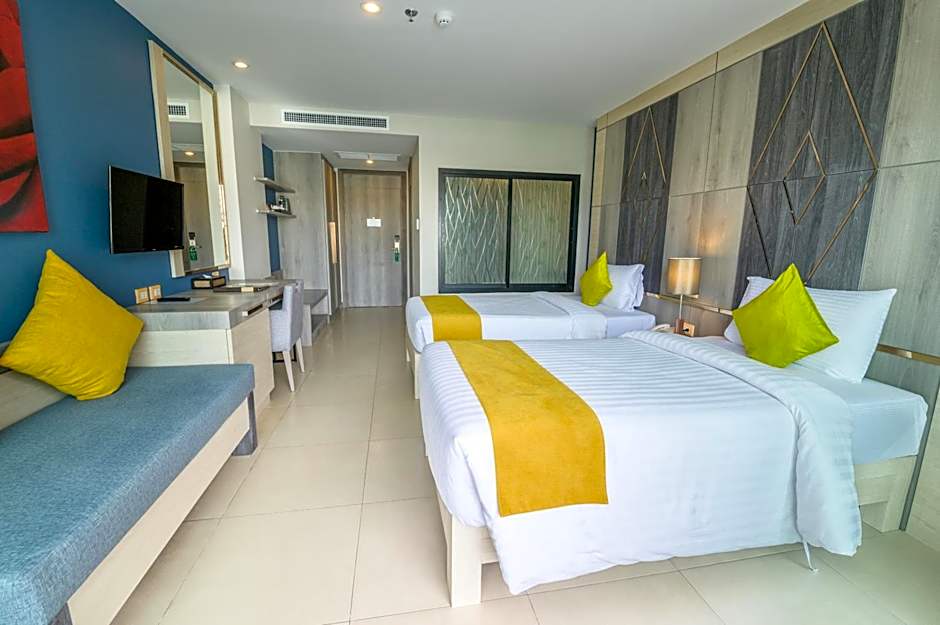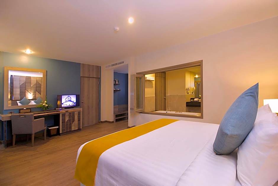 Featuring modern interiors, the room offers a private balcony with views of Patong's landscape and tropical garden.